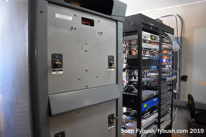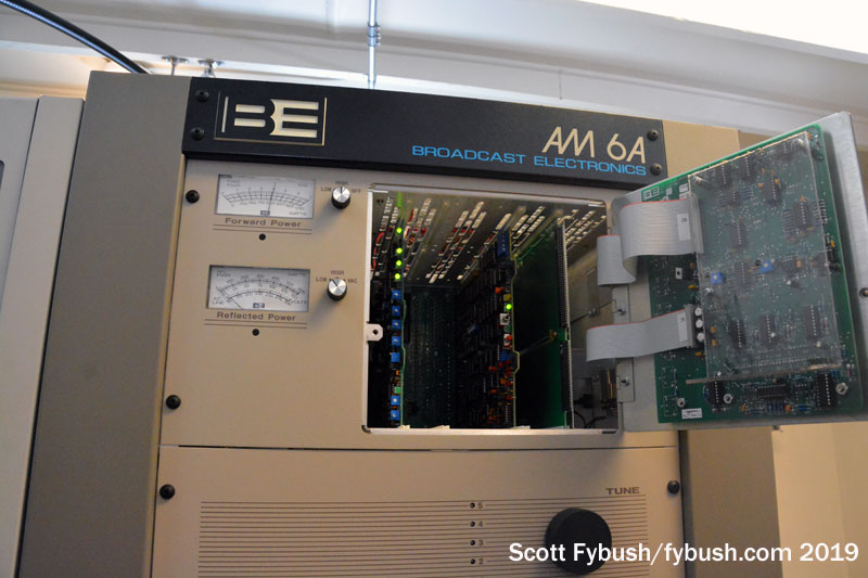 Let’s pause here for a moment to take a walk through this building. It’s a split-level plant, with a main floor that held the reception area and a manager’s office that’s been converted to a transmitter room for 820. (Just after we drove away, they installed a new Nautel in this room to augment the BE and the Gates Five that had previously powered the 4300-watt day, 430-watt night signal here.)