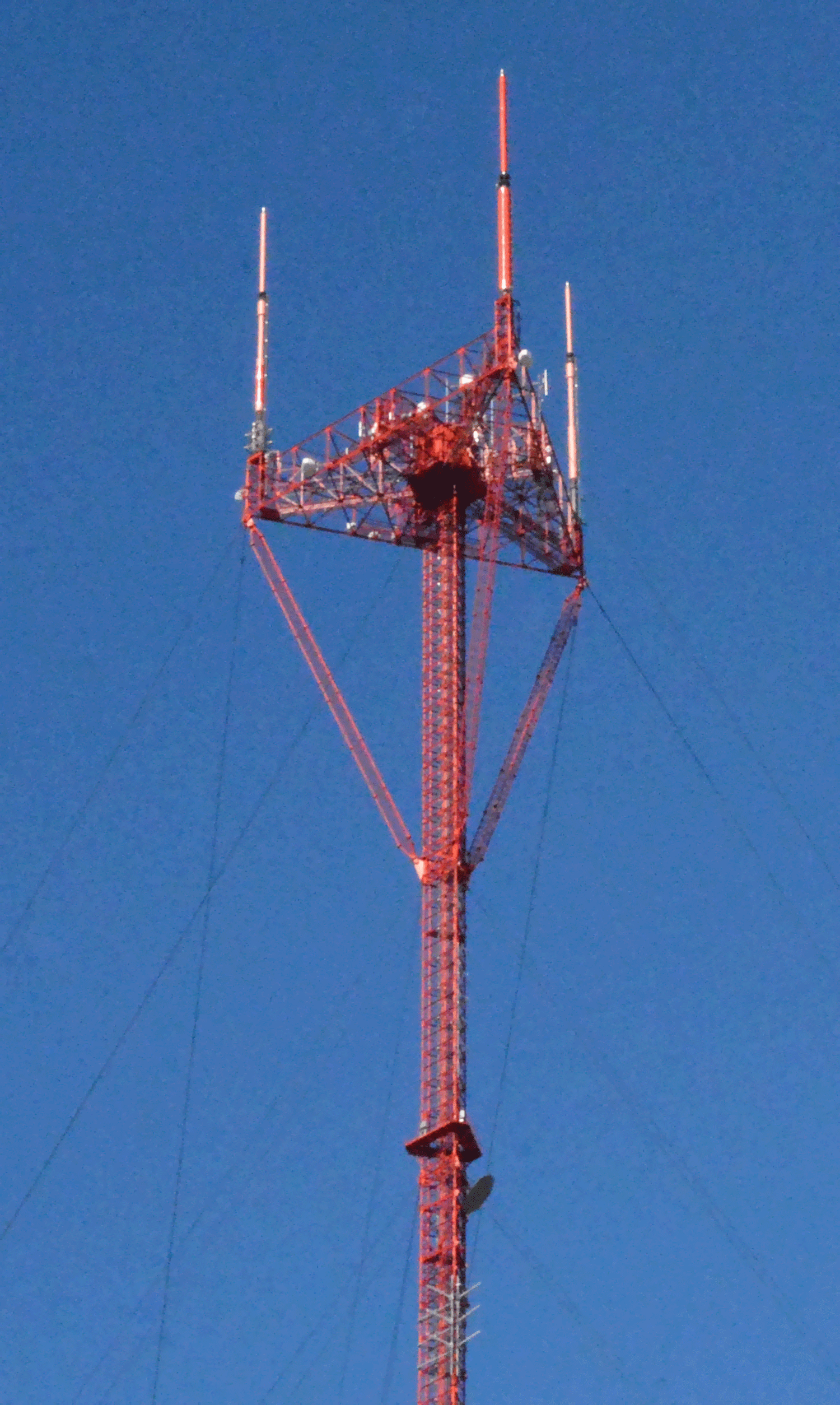 There’s a guyed tower on the hill that’s even taller; it belongs to Sinclair’s flagship stations, Fox affiliate WBFF (Channel 45) and CW affiliate WNUV (Channel 54), who have their studios nearby at the base of the hill, just around the corner from the road that winds its way up to WBAL’s building.