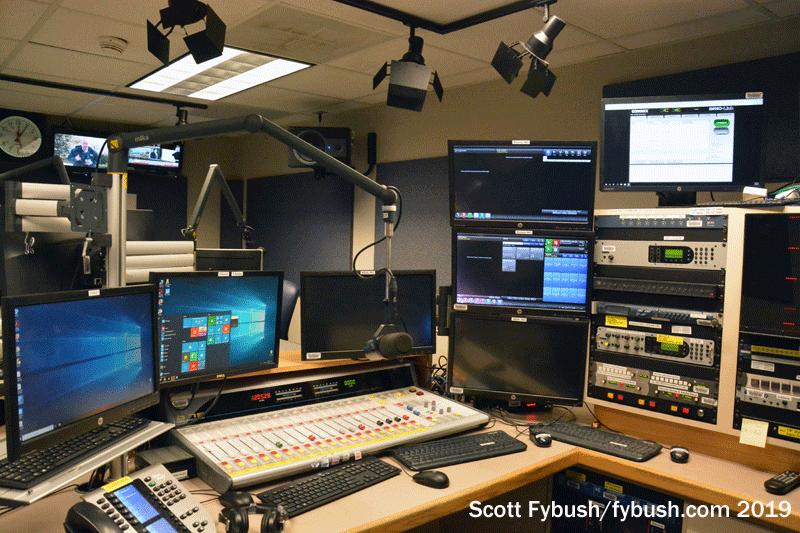 Heading up to the third floor, at first things don’t look all that different from our visit back in 2008 – there’s the same long hallway past the programming and sales offices that wraps around to the studio core. But then we enter the studios of Hearst’s FM station, “98 Rock” WIYY, and the change is immediately obvious.