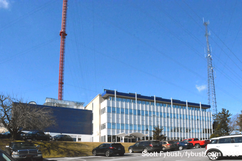 The candelabra tower here is one of the most impressive in the country, shared by the city’s three original TV stations. CBS-owned WJZ-TV (Channel 13) also has its studios here on the hill, on the other side of the tower from WBAL’s building; Scripps’ ABC affiliate, WMAR (Channel 2), has studios way across town but has also transmitted from this nearly 1000-foot tower since it was built in 1957. (It was shorter then – they added almost 300 feet to it in the 1960s!)