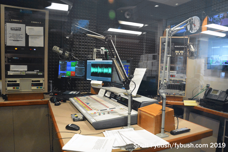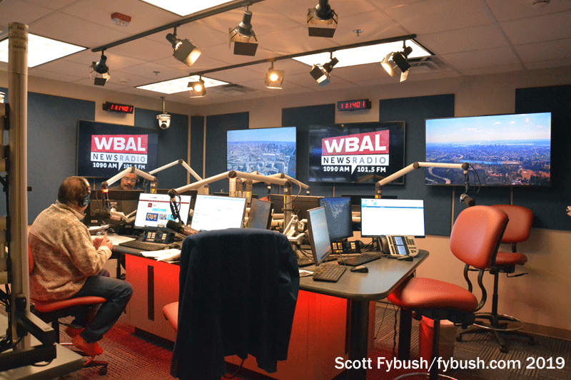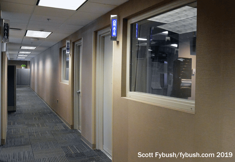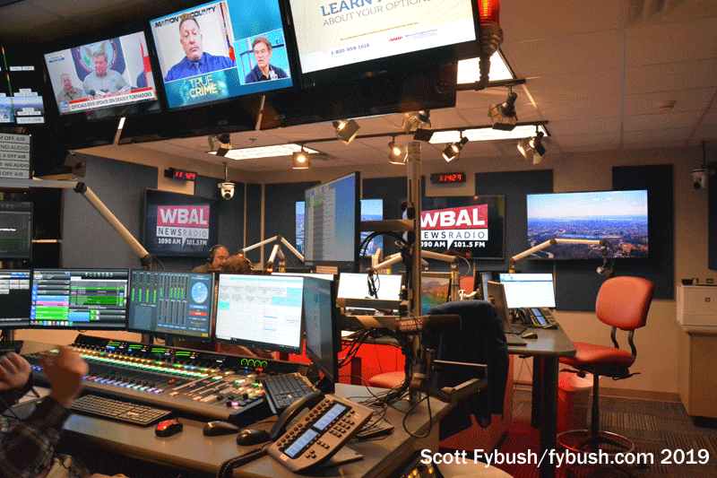 Across the hall, WBAL’s radio newsroom hasn’t changed as much – it’s still in the same spot, with the same studio for the news anchors to work from (linked, of course, by video feeds to the main studio on the other side of the hallway.)