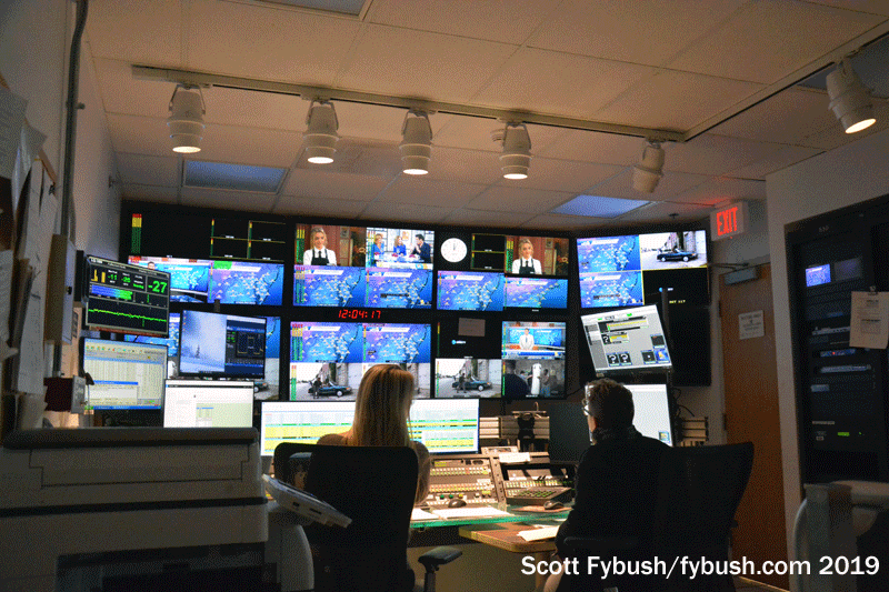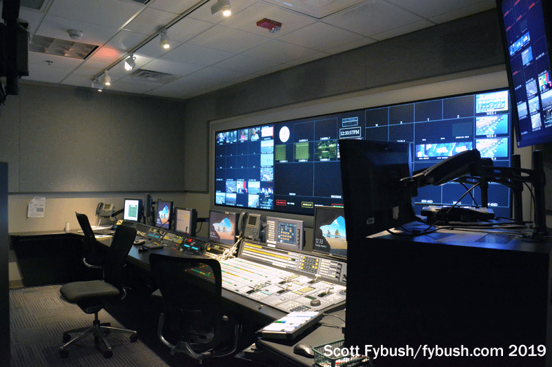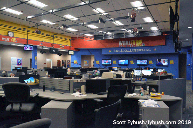Master control for WBAL-TV is still local here, down the hall at one end; down another hall from the newsroom is the control room for the local newscasts.