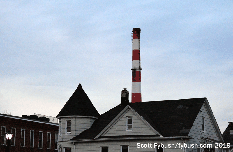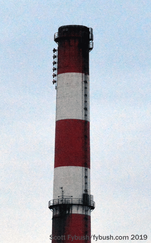 The parking lot provides a nice view across to the power plant whose smokestack carries the antenna of WEBE (107.9), at least for now; WEBE has a CP to move off this unusual site and up to Booth Hill in Trumbull, and we really need to get there for the tour before that happens.