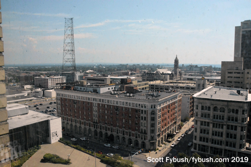 The tower on the Larkin got a second life in the 1960s, when Gordon McLendon moved his WYSL (1400) and WYSL-FM (103.3) up here from an earlier AM site a few blocks to the north; in 1978, those stations built a new tower near the 33/198 highway interchange on the north side of the city, and that was the last time there was full-power broadcasting up here, though a few LPTVs have used this site.