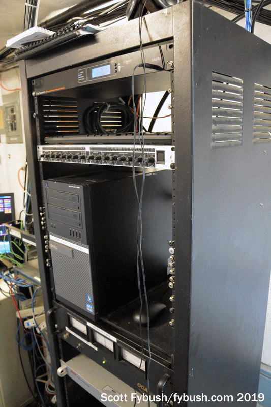 In addition to the commercial Reising Radio Group cluster downstairs, there’s a noncommercial Christian radio group upstairs, Good Shepherd Radio, also run by Keith Reising and family.