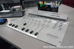 Since our last visit, these stations moved down the hall to a bigger studio/office space with adjoining studios for their two services. “The Bridge,” the contemporary Christian network based here at WKJD (90.3), has the studio along the outside wall, with one of the few Nicom Atlantis boards we’ve seen on this side of the Atlantic.