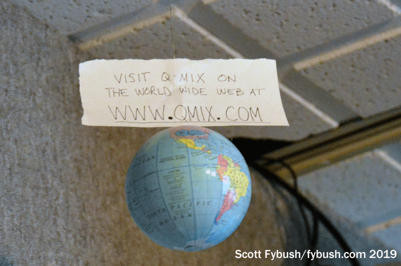 QMIX is still right there with pride of place in the front studio here, looking out on the downstairs lobby at the Reising Radio headquarters, but the studio’s been refreshed since we last saw it, with a new Audioarts board. (Some things don’t change, though – that globe promoting WWW.QMIX.COM has been hanging from the ceiling since the days when the “World Wide Web” was a big deal.)
