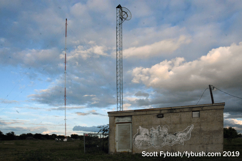 The third AM is religious KBBW 1010, a big 10 kW day/2500 watt night signal from a site far to the east of Waco, but given the choice between the drive out there and a chance to see the TV towers in town at sunset, we went for the TVs instead.