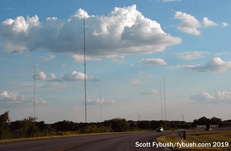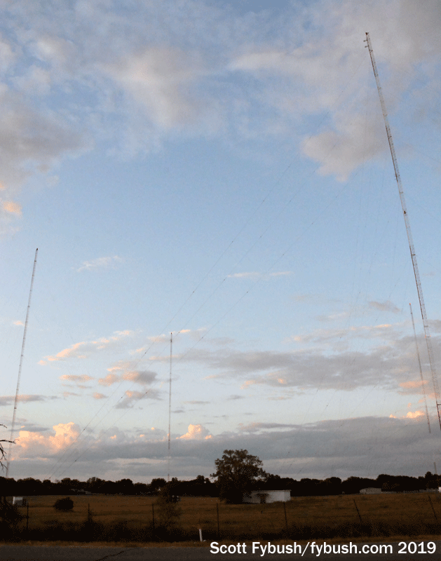 (It uses three towers by day, all six after dark, with a tight beam eastward into San Antonio when on the night pattern.)