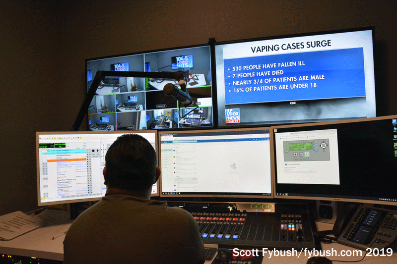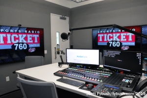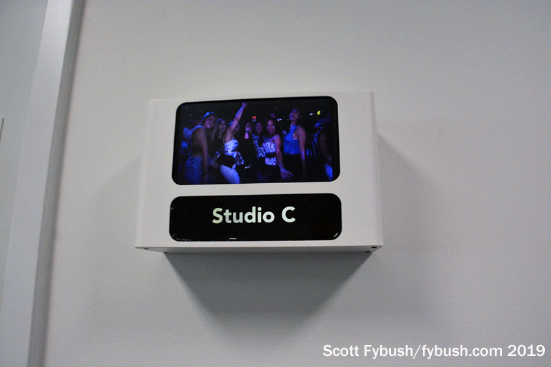 Who’s in which studio? You’ll need to look at the video screen by each studio door to see who’s reserved the room, and for which station – any of these studios can easily be put on the air live on any station, or can be used to track a station or feed out to a station or network somewhere else.