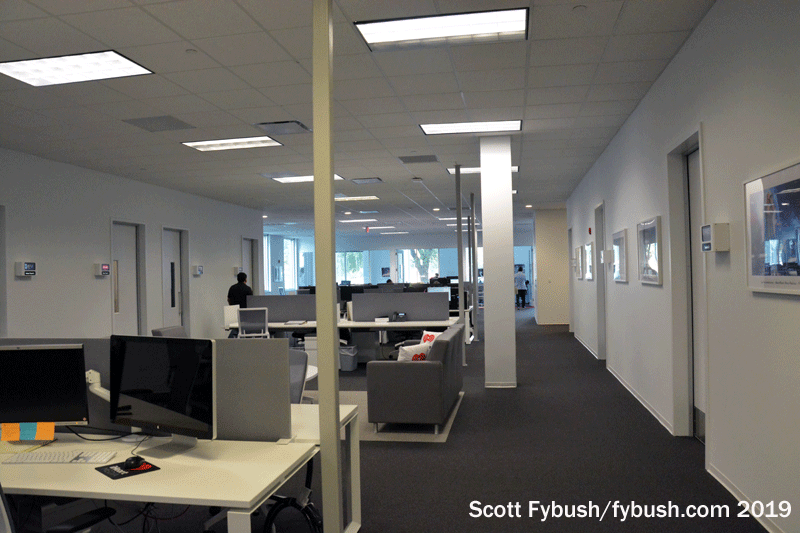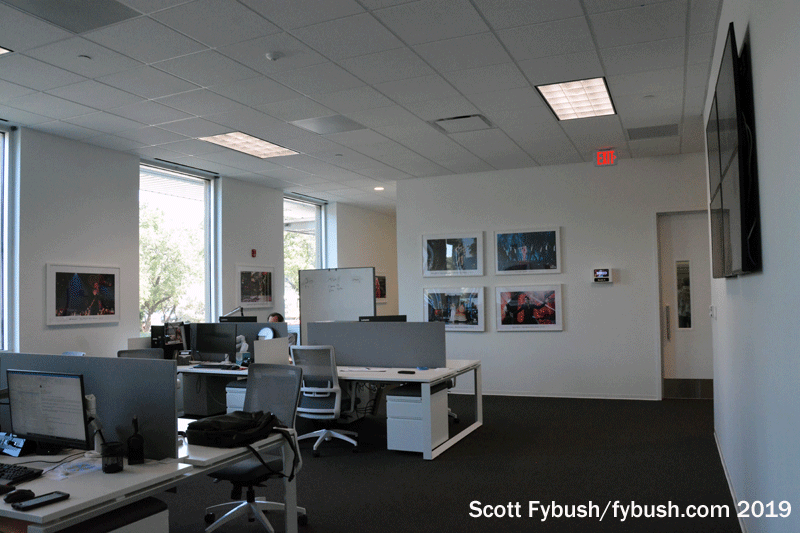 Keep moving down the hallway here and you’ll pass a programming bullpen area with a handful of enclosed offices – and then turn the corner and you’ll find another open office area lined with studios.