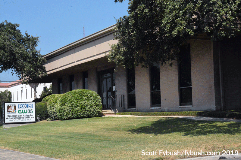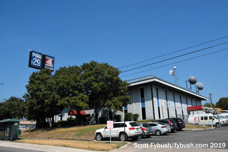 Looking for San Antonio’s TV stations? You’ll find several of them up here on the north side, including three right on the frontage road along 410 just west of the big interchange with I-10. This is the longtime home of Sinclair’s Fox affiliate KABB (Channel 29, named for original owner Alamo Broadcasting), as well as its shared-services partner KMYS (Channel 35, once KRRT for its city of license, Kerrville.)