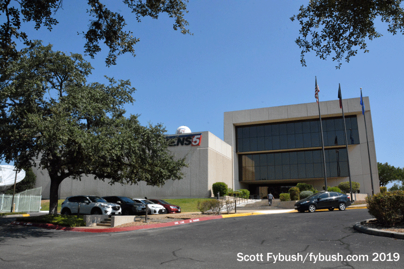More recently, this complex of buildings (business office on the left, studios on the right) has also become home to KABB’s duopoly partner, NBC affiliate WOAI-TV (Channel 4); in 2014, channel 4 left its longtime downtown home at 1031 Navarro Street to move up here.