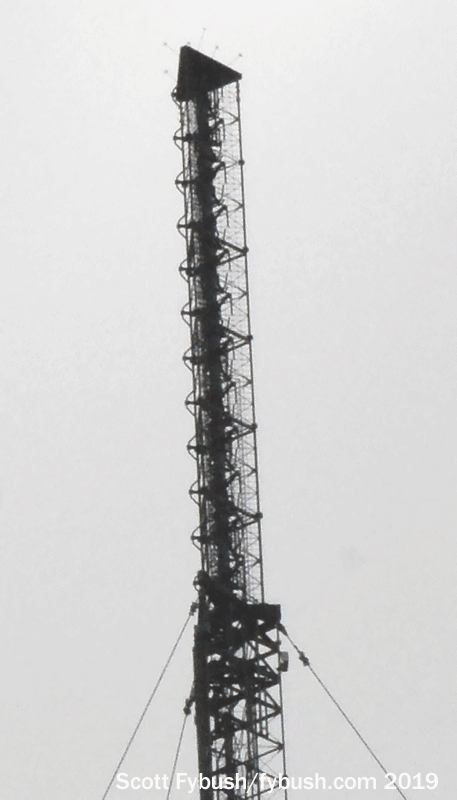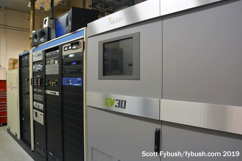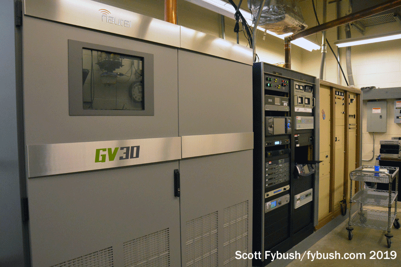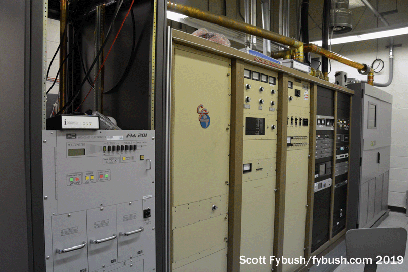 There’s a massive combiner room here, part of ERI’s overall facility design. With 100 kW ERP for each of these class C stations, there’s a lot of RF headed up the pipe to the twelve-bay cogwheel antenna (actually, two separate six-bay antennas) at the top of the tower.
