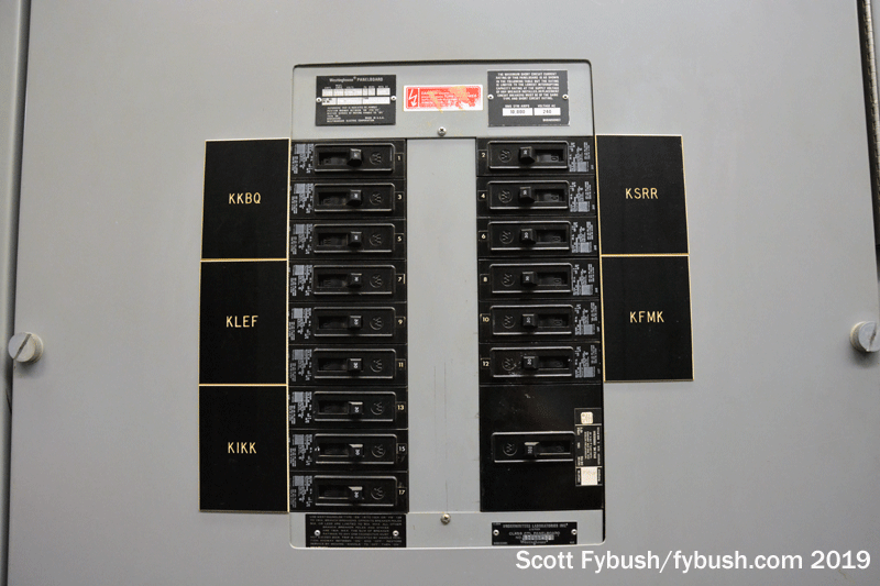 There’s a separate generator room, lots of cooling to deal with the heat of a Houston summer, and lots of power handling. (It’s worth noting that they’ve left the original callsigns on the breaker panels, all these years later – and that a surprising number of these stations still have their 1980s-era callsigns even now.)