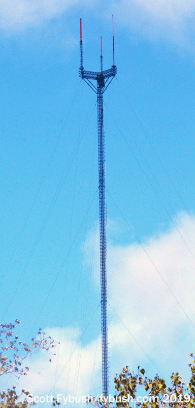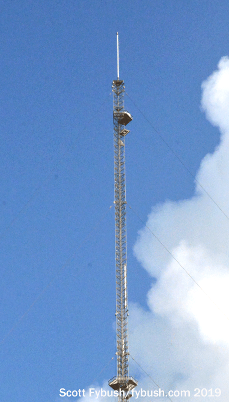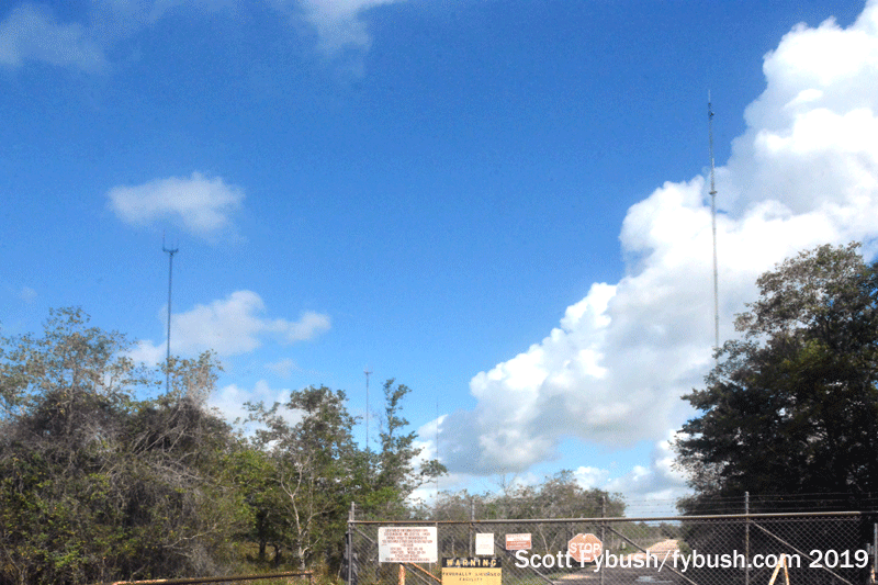 We didn’t get very close to the American Tower candelabra, which has a Senior Road mailing address even though the part of Senior Road where it once sat was wiped out by new housing developments and the tollway. (This is also, ironically, the site originally proposed for what became the “Senior Road” FM tower, two decades before this 2000-footer went up in 2000.)