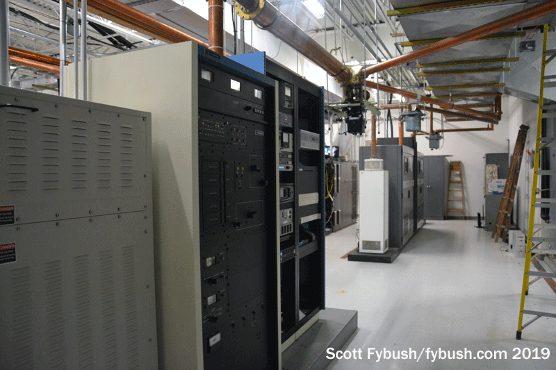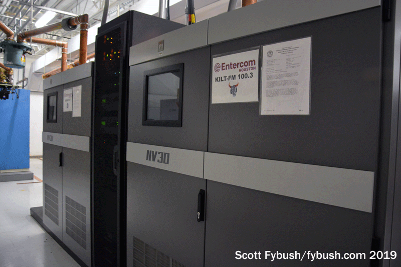 This site serves as the backup facility for most of the FMs on the Senior Road tower: Entercom’s KKHH (95.7), KHMX (96.5), KILT-FM (100.3) and KLOL (101.1), Cumulus’ KRBE (104.1), iHeart’s KTBZ (94.5) and KODA (99.1) all have transmitters here – but unlike up the road at “Senior Road,” these transmitters don’t have rooms of their own, just one huge space filled with transmitters (and with a big combiner space upstairs!)