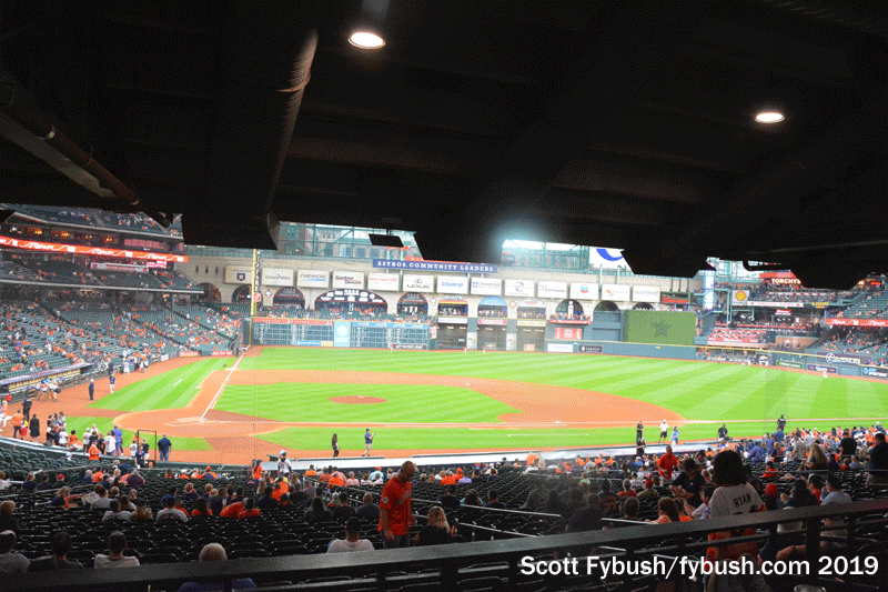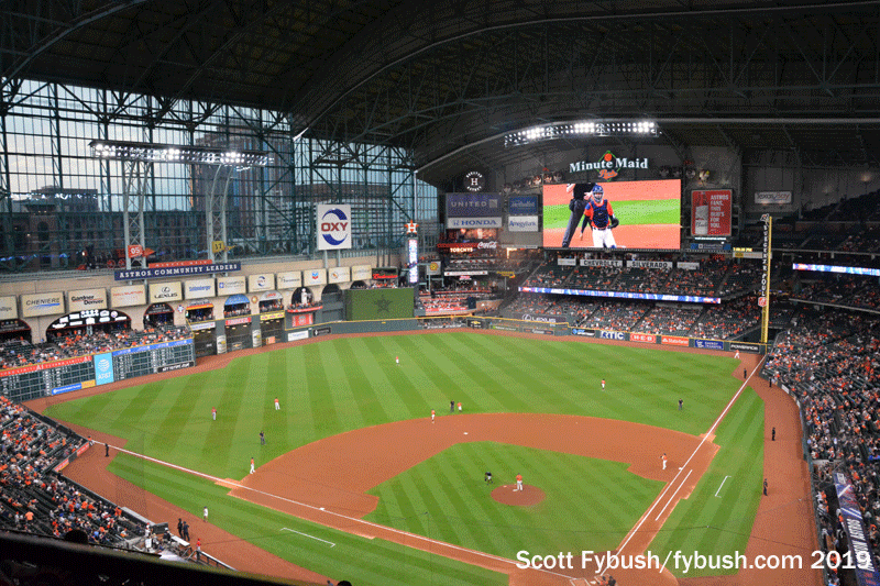 So where were we headed on our first full evening in Houston? To see some baseball, of course, checking off Houston’s downtown Minute Maid Park as our 27th active MLB park. (Oh, for the days when we could travel places and go to ballgames!)