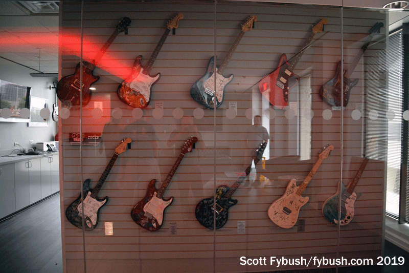 But don’t linger on the third floor very long (though there is a nice display of guitars in front of the station lounge area here); while there are sales and executive offices here, all the studio action requires an elevator ride upstairs.