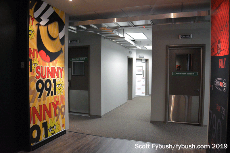 This facility bears a close resemblance to other studio plants built by Clear Channel in the early 2000s: like its big facilities in Los Angeles and Denver, it’s constructed with pods for either one or two stations, each with an air studio and a production room, leading off short hallways from the main corridor.