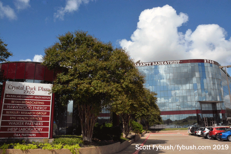 But wait – there’s more history! This Galleria Village building was also home to WTAW before it and its Bryan Broadcasting sisters moved a few miles south to their current home along the freeway.