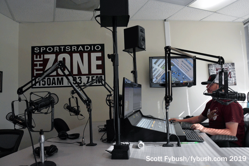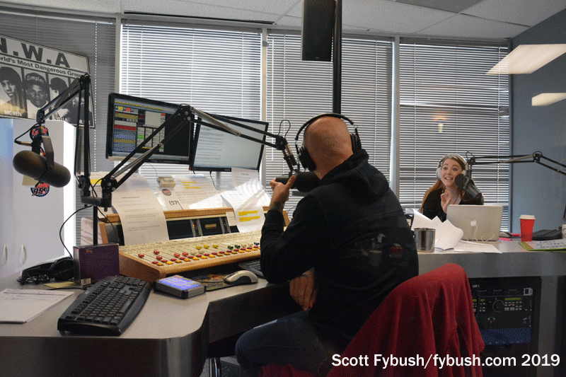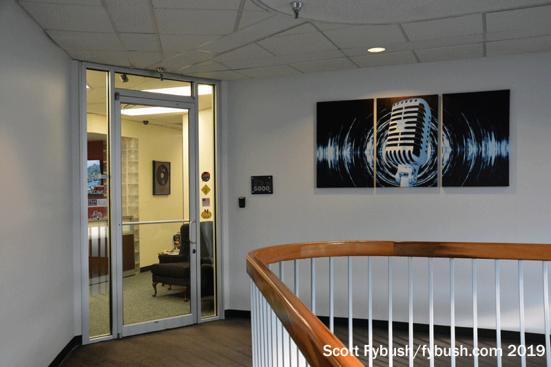 Traveling with Lance Venta of RadioInsight, we were flattered to see our logos on the monitor wall in the lobby as Ben welcomed us in and showed us down the long line of studios for the many signals and formats that make up this cluster.