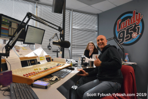 The original WTAW-FM was a class A at 92.1. Later known as KTSR, it eventually moved up the dial to 95.1 with more power, becoming “Candy 95.1,” KNDE, where we caught up with morning hosts Frito and Katy in their studio as their show was wrapping up.