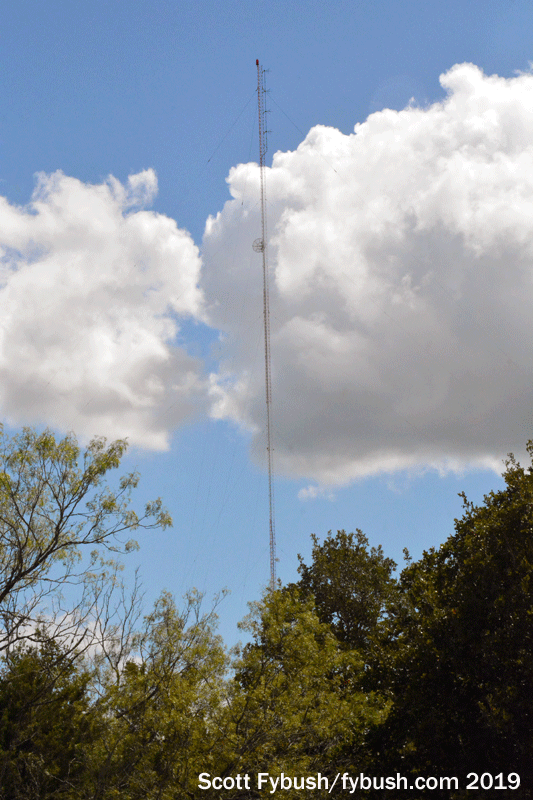KWBC’s 1550 signal now diplexes here, with 1500 watts by day and 50 watts at night, and there’s an aux here for KNDE, too, at what was surely the original WTAW-FM location.