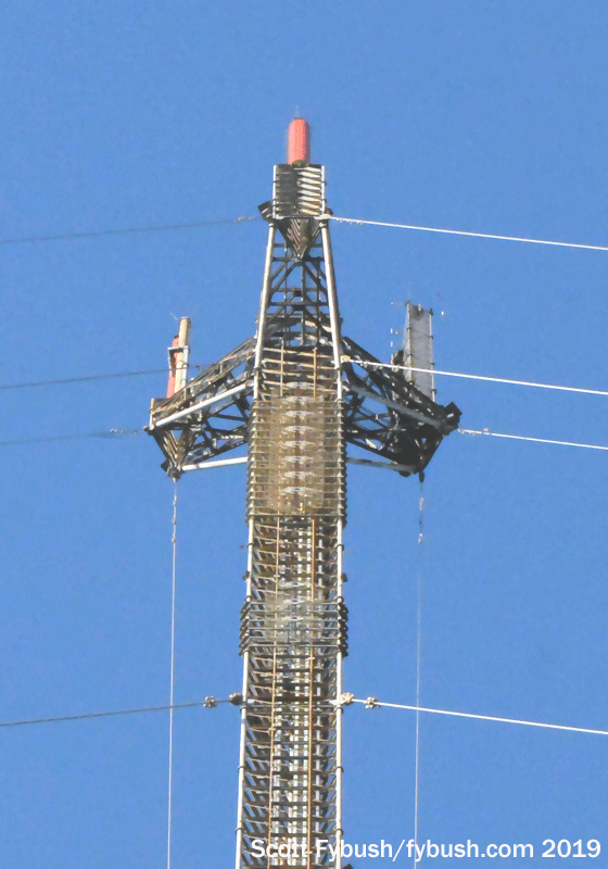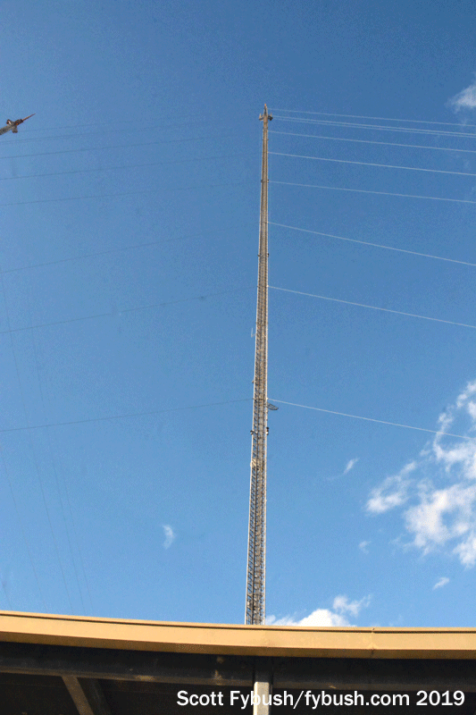 At just over 1600 feet tall, this is one of the newer towers in the northern part of the farm, having gone up just before the turn of the century to provide more vertical real estate for the DTV transition and for more FM stations.