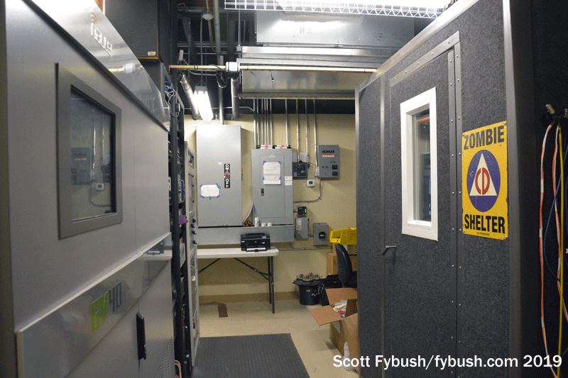 But it was for FM that Cowboy really ended up finding its main purpose. Ten of the market’s 18 Cedar Hill class C commercial signals ended up moving in here, all lined up neatly in small rooms along both sides of a hallway in one of the two big buildings at the tower base. Five of them belong to iHeart, and among them they share four rooms, with KDGE (102.1) and KDMX (102.9) paired up in one larger room near the end of the hallway.