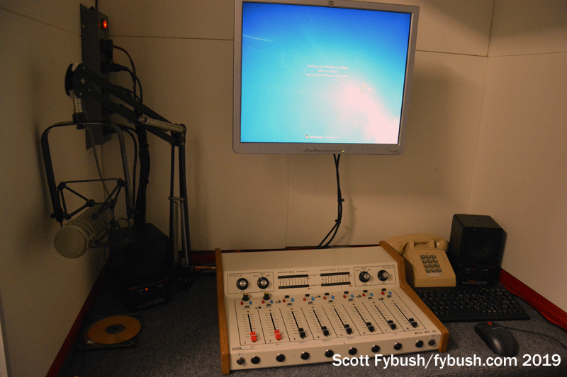 This room also has a little acoustical booth at one end, with just barely enough of a board and automation inside to be a very-last-ditch emergency studio if the zombies attack.