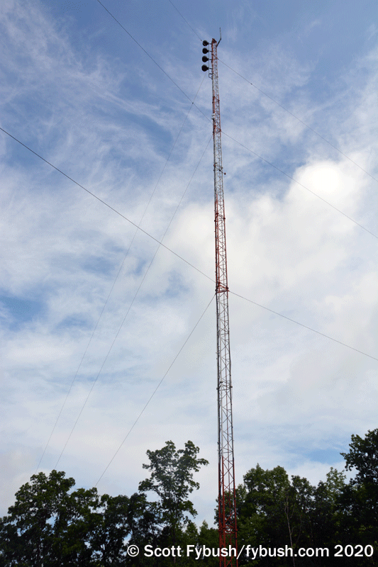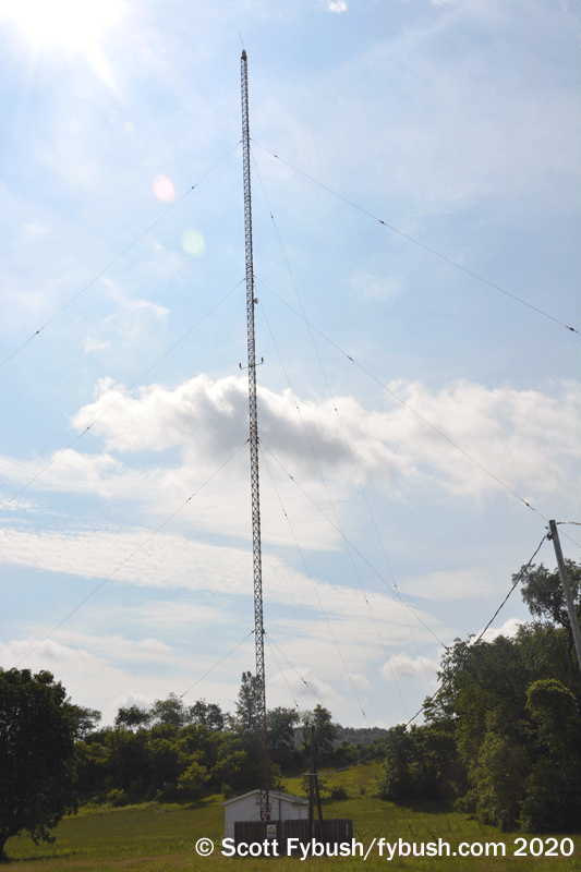 On the AM side, you might think this is the original site from 1950, but not quite: back in 1960, WATS relocated just 750 feet, moving across Shepard Road to its current site on the south side of the road. (It’s still just 1500 feet south of the state line here, and about a mile and a half northeast of downtown Sayre.)