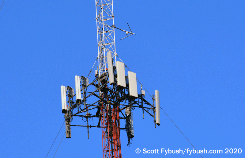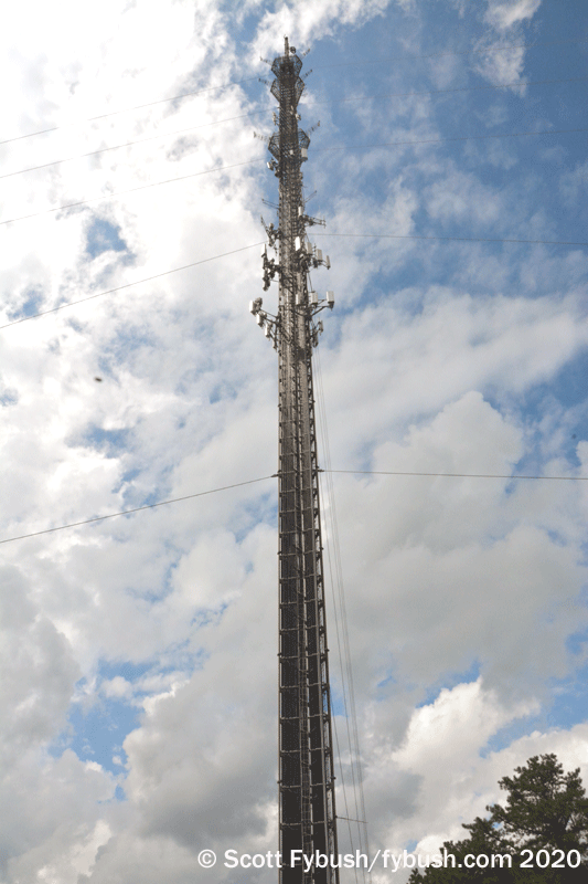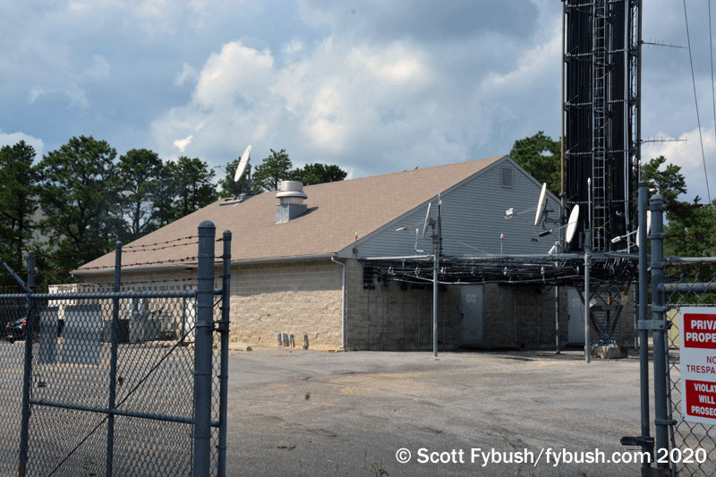 But when a tower was right there near the spot where we turned around to head back north, we weren’t going to leave without a couple of pictures – and so here’s the American Tower site off Exit 63 near Manahawkin. It’s home to a bunch of non-broadcast tenants, but also to WBBO (98.5 Ocean Acres), with its two-bay antenna near the top. There’s a three-bay antenna a couple of levels below that, for translator W265CS (100.9), relaying the “Praise FM” network from Cape May’s WJPG via an HD subchannel of WSJO (104.9) – and somewhere lower down, there’s an antenna here for WVBH (88.3 Beach Haven West), a little 100-watt signal that rebroadcasts “Reach Gospel Radio” from WXHL in Delaware.