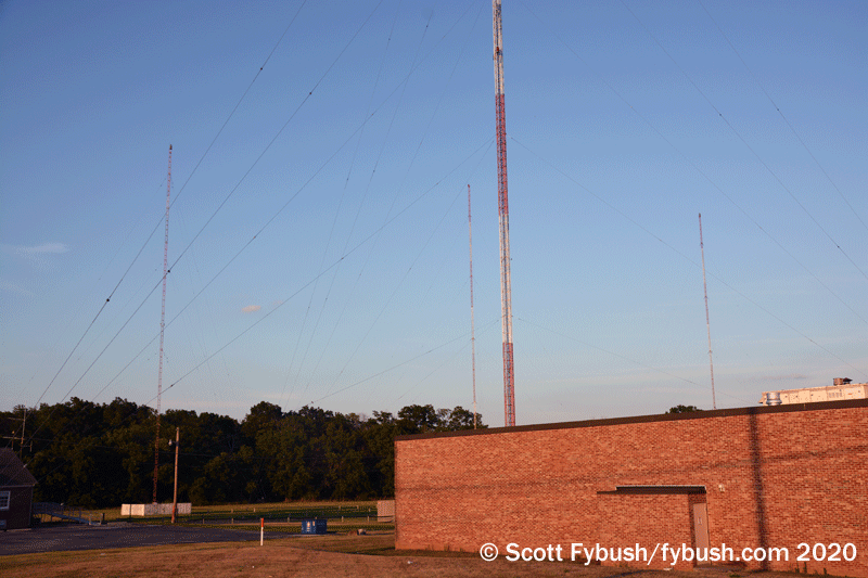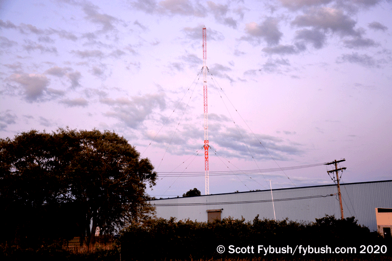 We’ve shown you WGY (810) in Schenectady, New York before (here’s our full tour from 2007), and we’ve driven by it a few times every year since, always admiring the call letters on the big Blaw-Knox tower right where the Thruway meets I-88. But at dusk on a perfect summer night? How could we not pull off (briefly!) for a shot of the big tower against the sunset? (You’ll see this one in Tower Site Calendar 2022, for sure, marking WGY’s centennial.)