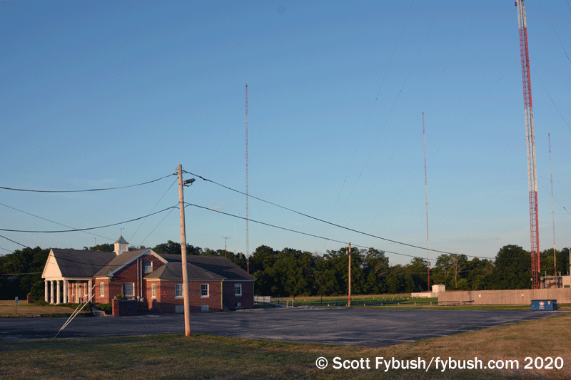 The old studio building here in Gettysburg that once held WGET and its FM partner, WGTY (107.7), is now leased out for other businesses, so it’s just the tower site out back that’s still used by WGET. The day pattern uses two of the three AM towers, while all three are used at night; the translator (W229DK) sits on the other tower at the site, right next to the back of the neighboring shopping center.