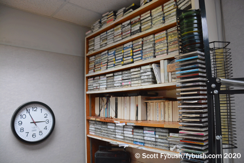 Up another half a flight of stairs, there’s a hallway lined with offices that were once used by programming and sales, several still full of records and memorabilia from the Silliman era, left behind rather abruptly when Silliman signed the station off in 2017.