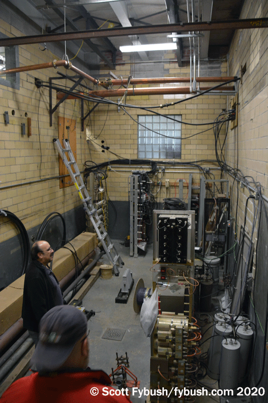 There’s a lot of history in these old tiled walls – this building went into service in the 1950s when Syracuse’s first TV station moved up to Sentinel Heights from its original studio/transmitter site on Court Street north of downtown. Back then, the station was called WHEN-TV and was on channel 8, and it must have been a fascinating project when WHEN moved from 8 to 5 in 1962 on the same day Rochester’s WROC went from 5 to 8.