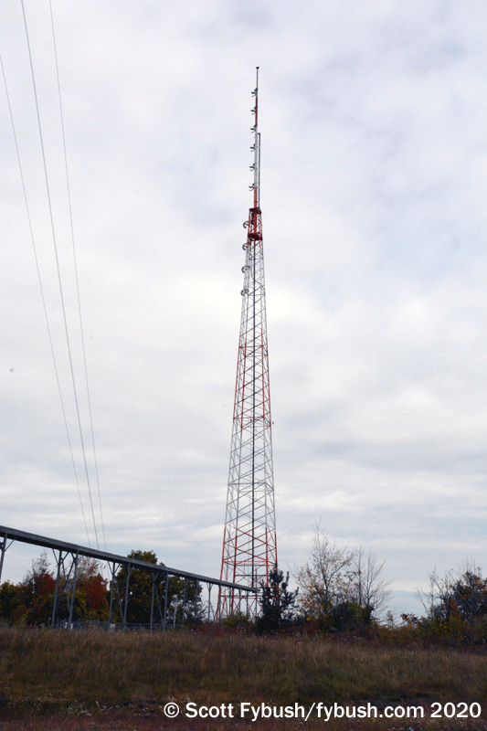 This tower used to be WCNY-TV’s analog home, and it has a new tenant: Ion’s WSPX (Channel 56) moved its post-repack signal on RF 36 to this site from its original analog/pre-repack site far to the northeast of town on the shore of Oneida Lake. (That tower, which is now vacant, happens to be the tallest in New York State.)