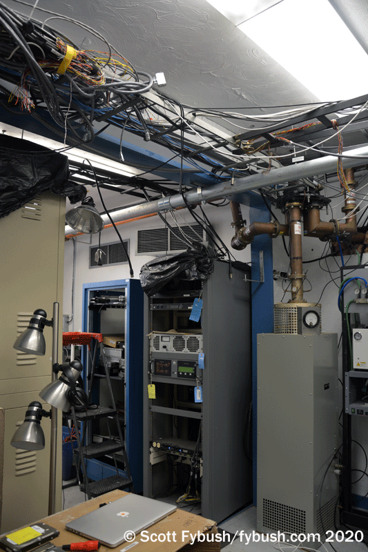 We’ll spare you all the gory details here at the WESA site, but suffice it to say the Nautel Q-series transmitter that was still fairly new when we saw it in 2011 was directly under the leaky roof and was no longer operable. The rig that normally generated WESA’s HD signal was repurposed as a low-power analog signal while Nautel came through, first with a low-power temporary transmitter and, right after the new year, a new full-power GV-series transmitter that went into a redesigned transmitter room. (We need to get back again now to see the finished final product!)