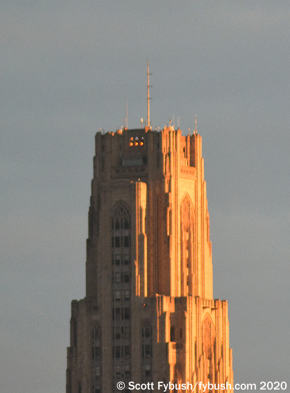 This being a quick trip, we didn’t get much other tower-hunting in – except from a very well placed hotel room window on the south shore of the Mon, where we had a lovely sunset view across the river to Oakland and a couple of sites that showed up nicely on the long lens.
