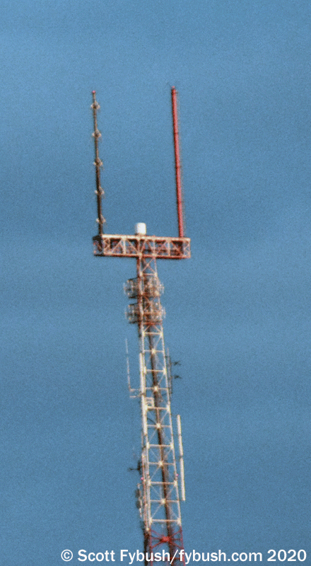 It keeps changing, of course – these days the goalpost holds an antenna for Ion’s WINP (Channel 16), with WQED (Channel 13) now on its post-repack facility on RF channel 4, on a side-mounted Jampro antenna. WQED-FM (89.3) is up here, too, on a two-bay side-mounted antenna, as are several LPTV stations.