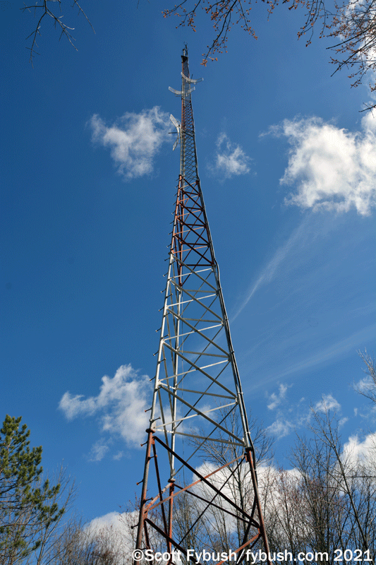 There’s one more site we can show you in the Utica area from yet another quick stop in the spring of 2021, and that’s Prospect Hill, southeast of Utica. Just west of Clinton and about equidistant from Rome and Utica, this site came into use in the 1980s as several new FM signals hit the air in the market in the aftermath of Docket 80-90.