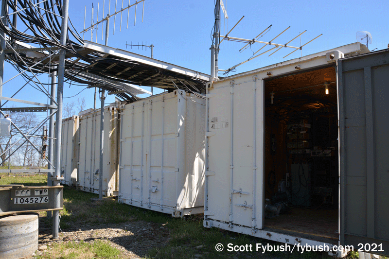 In those relatively early days up here, there was no transmitter building, just a fleet of storage containers lined up next to the 445-foot tower. Those containers are still there now, home to lots of two-way radios and one container that houses all the FMs that use this tower.