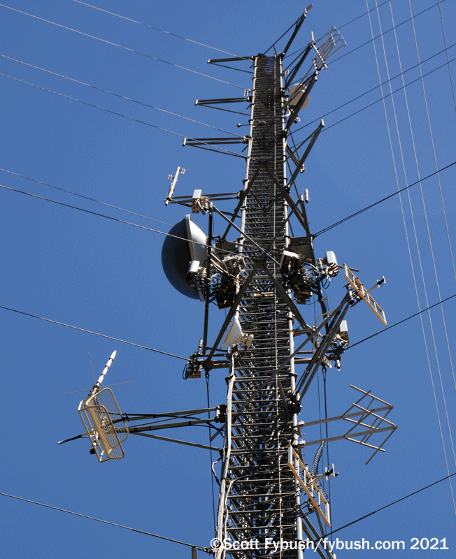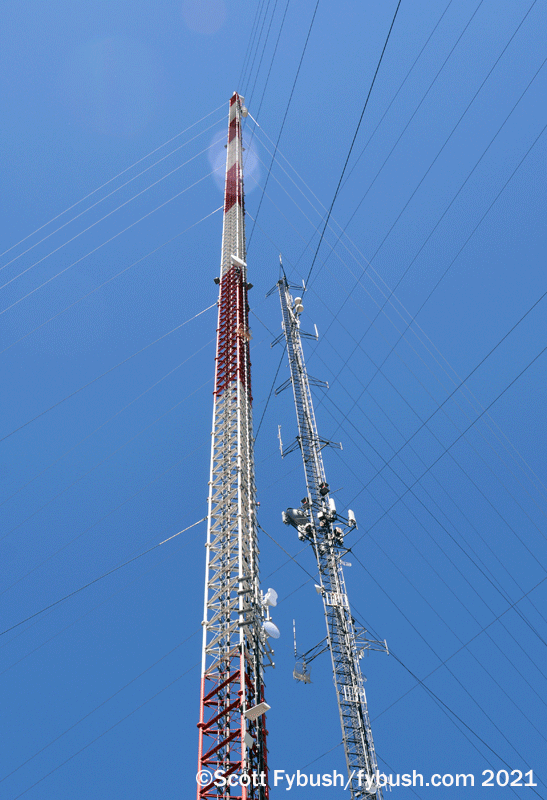 One of the tallest tower sites in New York State is also one of the newest. It’s been less than 20 years since Gordon Ishikawa built the 800-foot tower that crowns Higman Hill, just southwest of the city of Corning and easily visible from almost anywhere in town. And yet it took us until early 2021 to finally get up to and inside this site, now home to all but one of the Elmira-Corning market’s TV stations and several FMs.