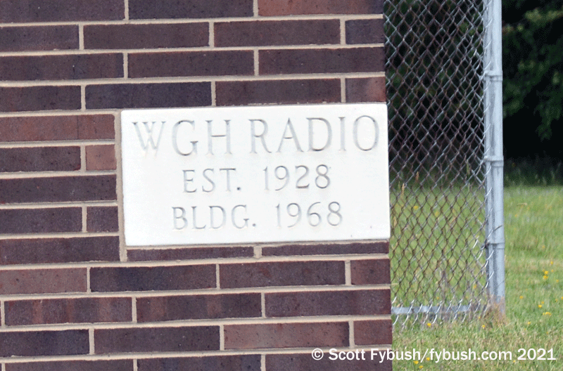 Over the years, the WGH stations changed owners, eventually ending up with today’s Max Media. (We saw their studios on our last trip.) Both the AM and FM changed calls along the way – look carefully at the mailbox by the AM site and you can see a faded “97 STAR,” from its time as WRSR – but thankfully never both at once, allowing the three-letter calls to survive.