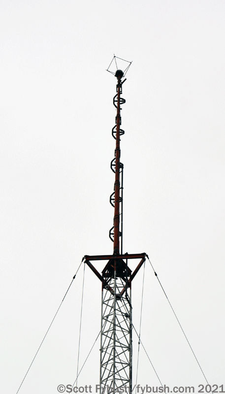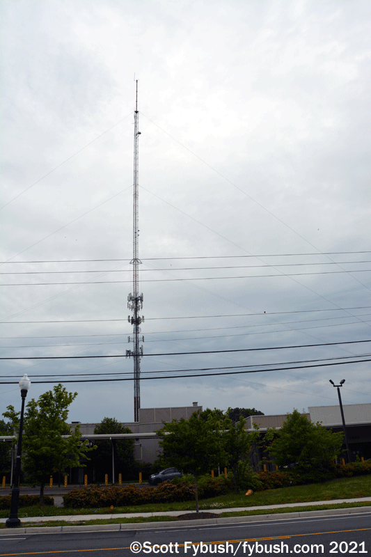 On the AM side, 1490 went through several iterations of format and owner, spending some time as part of the Redskins-owned Red Zebra sports network out of Washington. Today, WXTG carries a classic R&B format as “The Groove,” augmented by a translator on 101.9 mounted at the top of this tower. (There’s another leased tower site right next to 1490/101.9, but nothing broadcast there.)