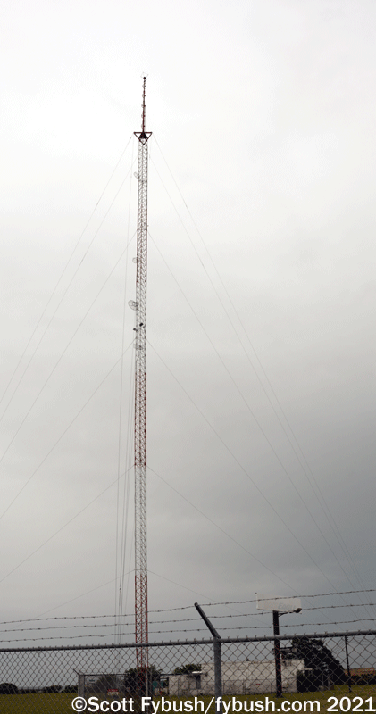 So about 1490: when WVEC moved its transmitter west in 1962, it was to a site that now sits right next to the busy ramp from I-664 to I-64 east, tucked in behind a subdivision that’s a few decades newer than the tower. WVEC radio changed calls over the years, becoming WWDE on both AM and FM; the WWDE calls survive to this day as “2WD” on FM, now broadcasting from a site over in Norfolk.