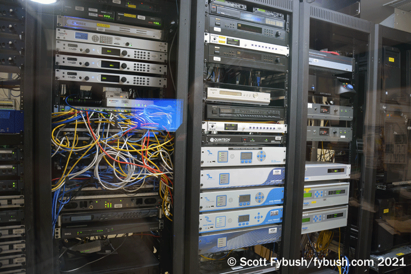 There’s a rack room that was undergoing some reconstruction at one end of the studio hallway, tying all of these signals together and sending them out to transmitter sites all over the region.