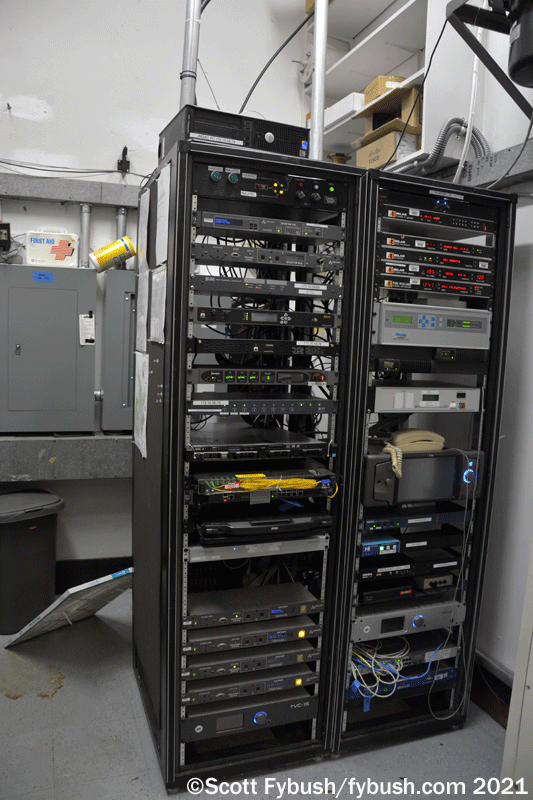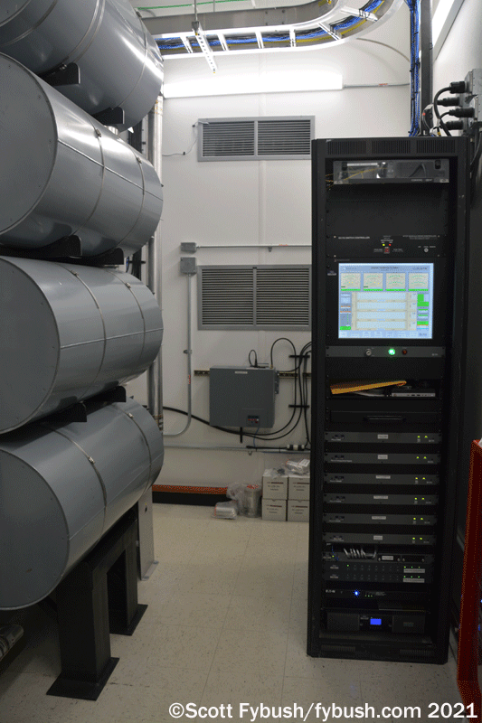 All of the STLs and processing and monitoring for the highest-revenue commercial FM station in the country? It’s all in just two racks off to the side in this compact room for WTOP, all backed up completely in an auxiliary facility up at the old WTOP (1500, now WFED) site in Wheaton, Maryland, where 103.5 stayed on the air while the tower work was going on over here.