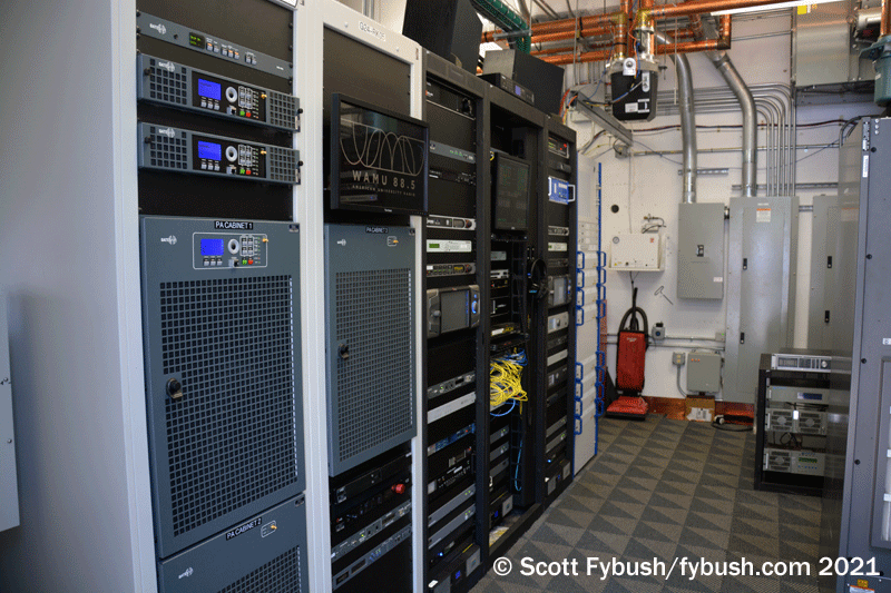 We missed the actual reconstruction, which took place during the heat of the pandemic in 2020, but a year later we got to see how everything here had been rebuilt. WAMU now occupies the very space where WMAL-TV started back in 1947, and it also renovated its transmitter room while the antennas were being redone (it has a full-power aux in Virginia at the WETA 90.9 site, which kept it on the air in the interim.)